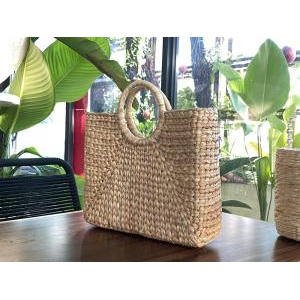 - Thành phần: Chất liệu sợi lục bình, có vải lót, khoá kéo, đan hoàn toàn thủ công.