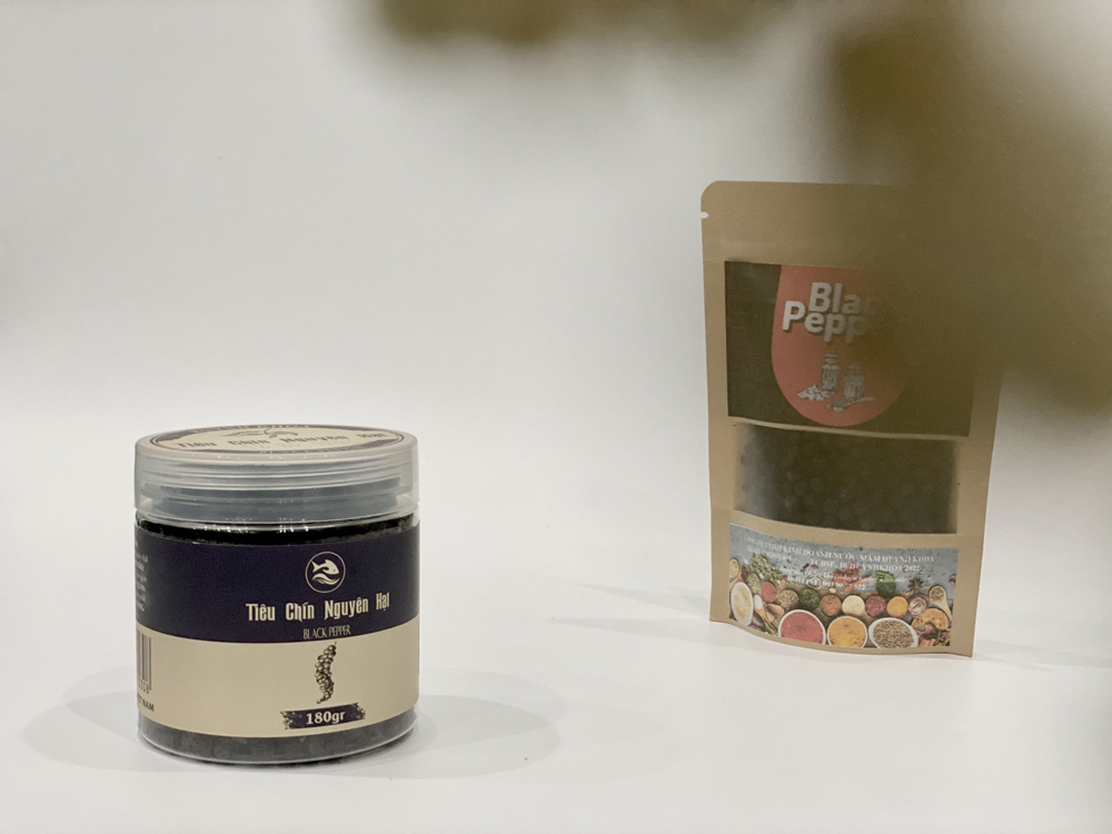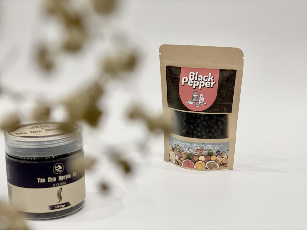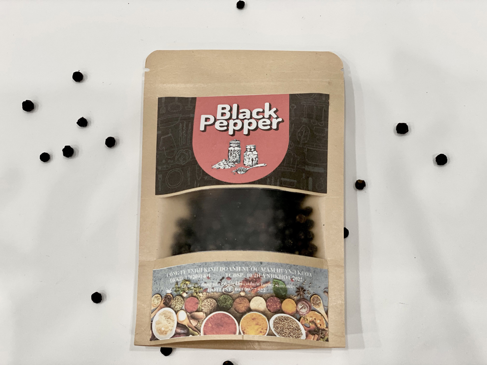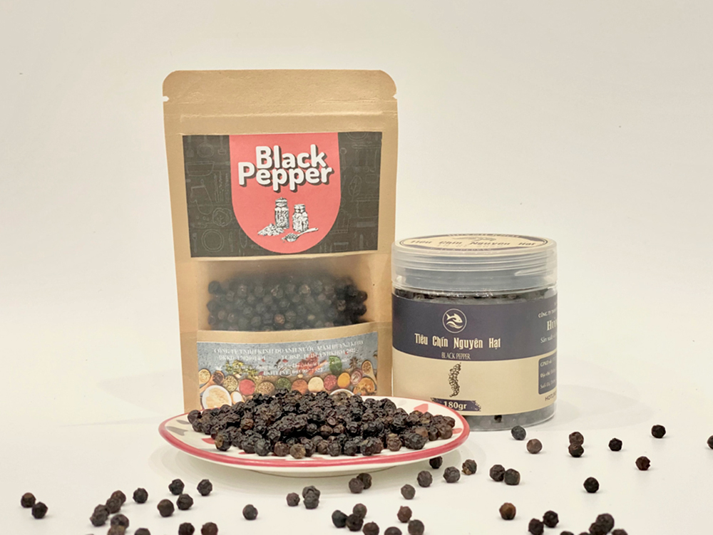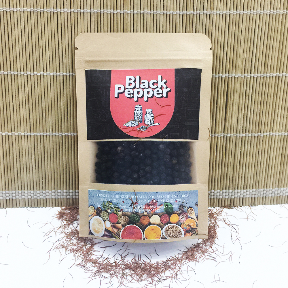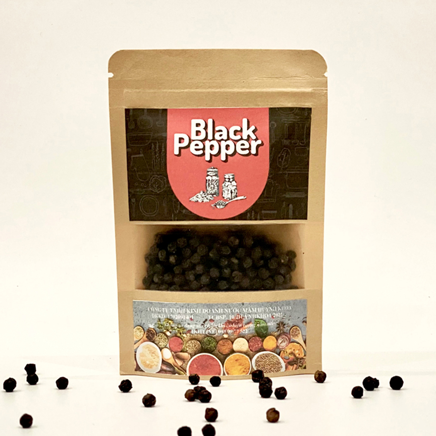 Tiêu đen nguyên hạt là một loại gia vị được lựa chọn và thu hái cẩn thận từ hạt tiêu chín đỏ, sau đó được sấy khô tỉ mỉ, trước khi được đóng gói giữ nguyên hạt. Hạt tiêu sẽ có màu đen và có hương vị cay nồng, thậm chí hơi ngọt. Đây là loại gia vị quen thuộc được sử dụng trong các bữa ăn của gia đình Việt, cũng là một loại gia vị không thể thiếu khi chúng ta muốn món ăn của mình trở nên ngon hơn.