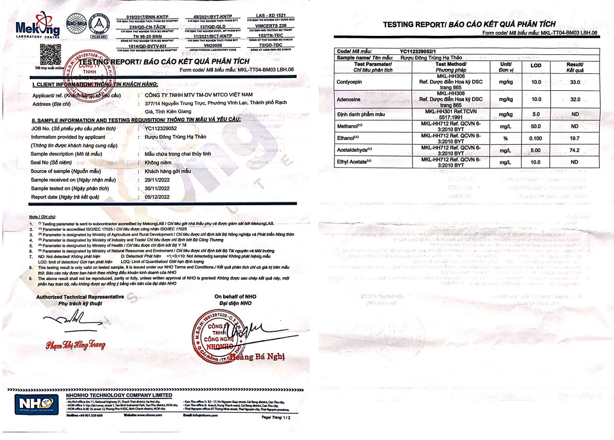 - Thành phần: Nấm đông trùng hạ thảo sấy thăng hoa khô 100%