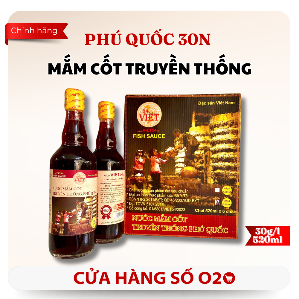 Sản phẩm nước mắm cốt 30 độ đạm đạt các tiêu chuẩn an toàn thực phẩm của Bộ Y Tế theo QCVN 8-2:2011/BYT và QĐ 46/2007/QĐ-BYT, cùng với tiêu chuẩn quốc gia TCVN 5107:2018, chứng minh sự cam kết về chất lượng và an toàn đối với sức khỏe người tiêu dùng. Số công bố: 01/6801/VIET54/2023..png)